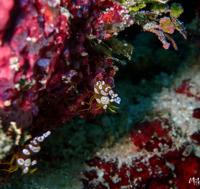Trotz ihres zarten Aussehens sind diese Garnelen ziemlich mutig! Man kann sie oft dabei beobachten, wie sie ihr Anemonenheim gegen neugierige Eindringlinge verteidigen, die ein Vielfaches ihrer Größe haben. Und wenn du Glück hast, entdeckst du sie, wenn sie sich den Platz mit Clownfischen teilen – eine bunte, chaotische kleine Nachbarschaft von Riffbewohnern.